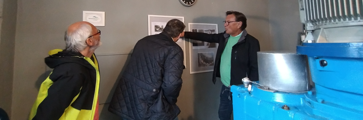 Auch das Wasserkraftwerk an der Weismain im oberfränkischen Altenkunstadt öffnete seine Türen. Marco Weidner, der zweite Bürgermeister von Altenkunstadt, ließ sich gleich am Morgen von Robert Limmer die modernisierte Anlage erklären, darunter den automatischen Rechenreiniger. In den Gebäuden der ehemaligen Korbwarenfabrik, die heute zu Wohnzwecken genutzt werden, zeigt sich, wie vielseitig Wasserkraft sein kann. Das neueste Projekt der Familie steht bereits in den Startlöchern: Sie planen, Wärme aus dem Flusswasser mithilfe einer Wärmepumpe zu gewinnen. Damit sollen nicht nur die noch genutzten Fabrikräume, sondern vor allem die Wohnungen in der ehemaligen Fabrik umweltfreundlich beheizt werden.