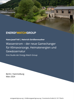 Die Energy Watch Group mit Sitz in Berlin hat auf der RENEXPO INTERHYDRO in Salzburg die Studie "Wasserstrom - der neue Gamechanger für Klimavorsorge, Heimatenergien und Naturstrom" vorgestellt. Darin wird die mittelfristig durch Repowering, Modernisierung und Reaktivierung von Wasserkraftwerken zusätzlich realisierbare Leistung auf 7,1 Gigawatt mit einer jährlichen Energieerzeugung von 28 Terawattstunden geschätzt. Gleichzeitig wird eine Neubewertung des positiven ökologischen Beitrags der Wasserkraft zur Gewässerökologie sowie auf Flora und Fauna angemahnt.